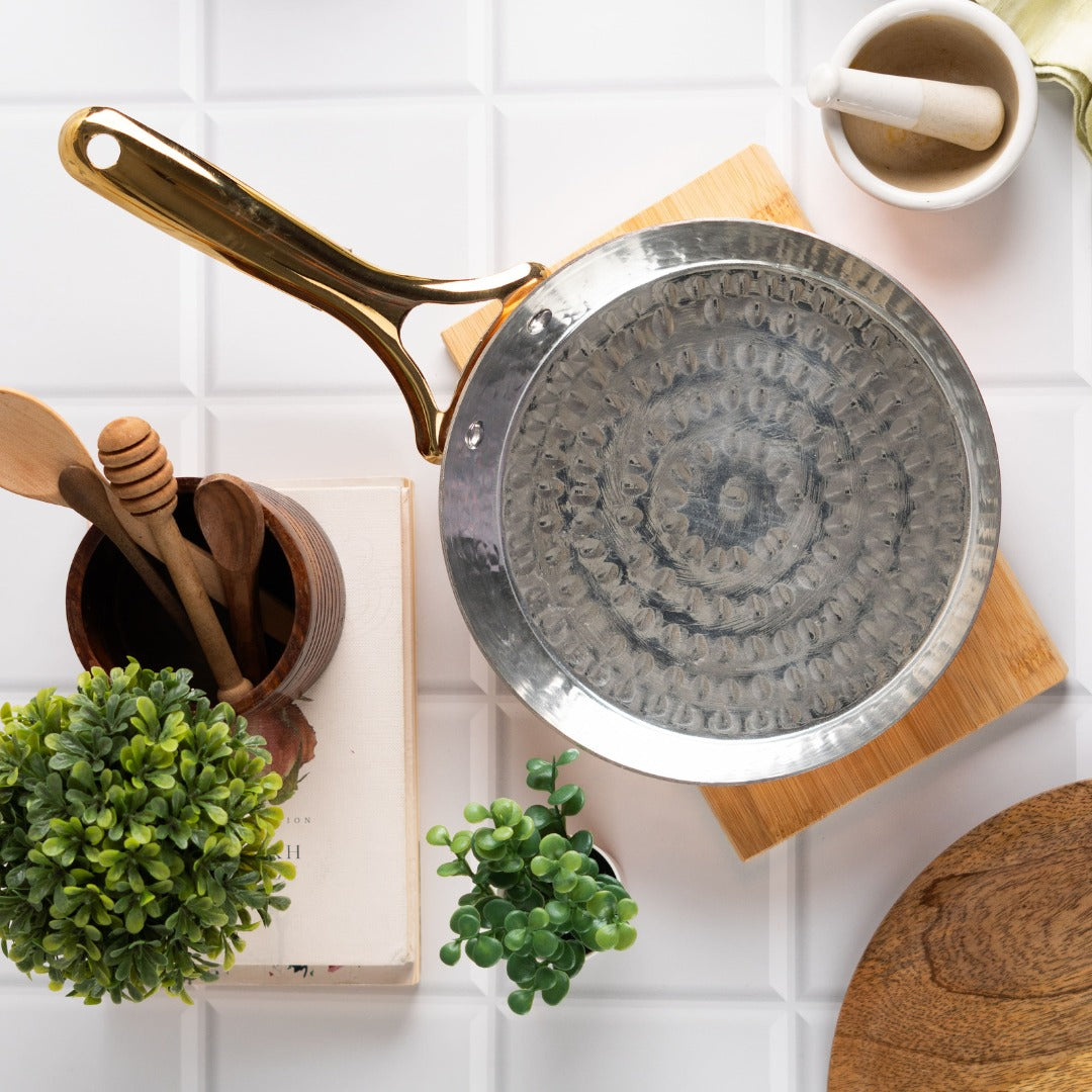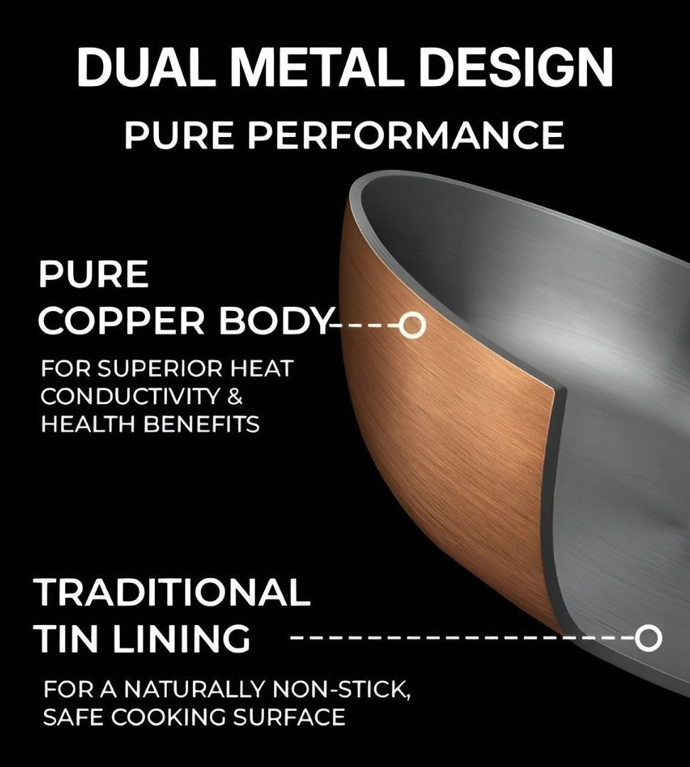 Handcrafted from certified pure copper and tin — the only two metals approved by Ayurveda and traditional European chefs for daily cooking — this pan isn’t just cookware. It’s a legacy.