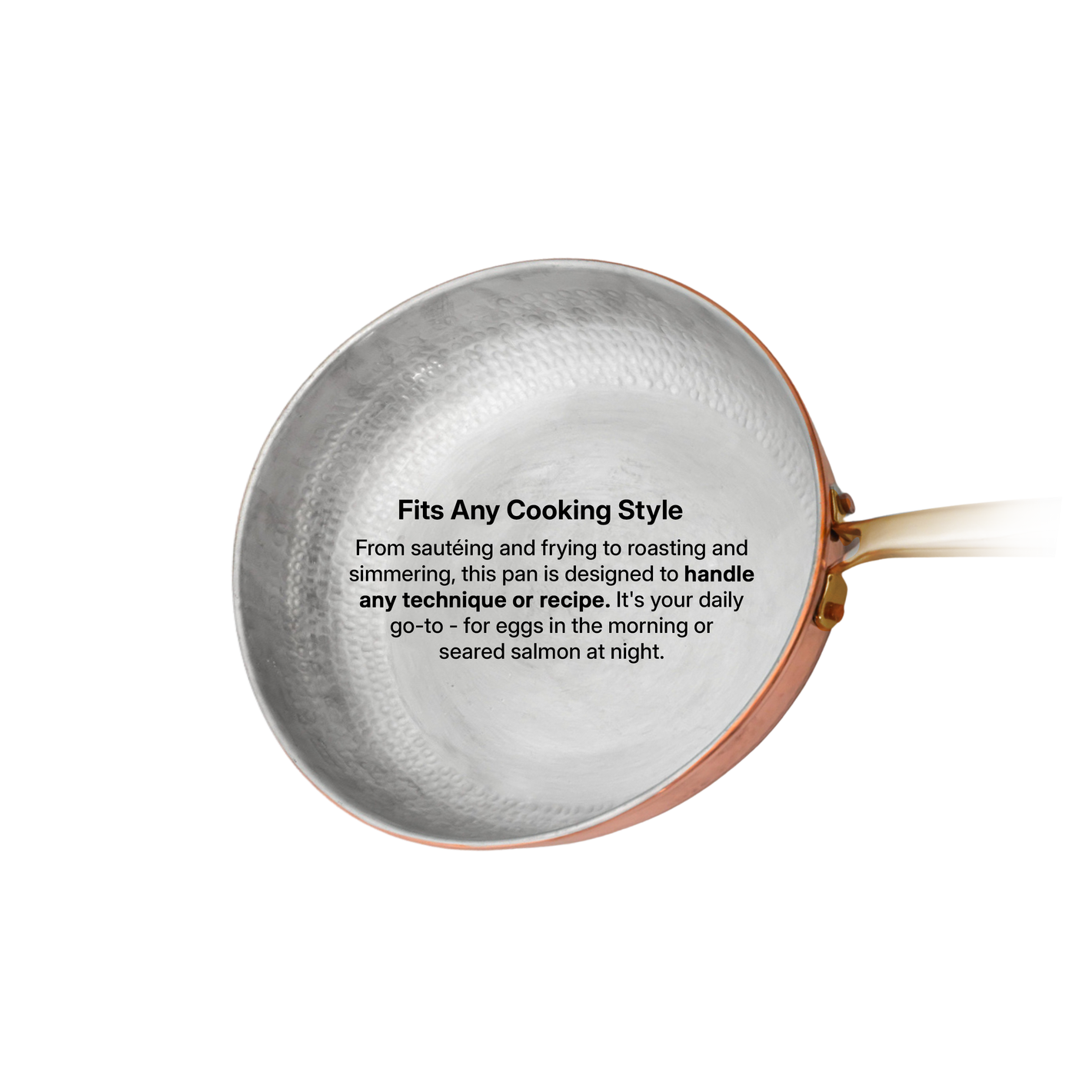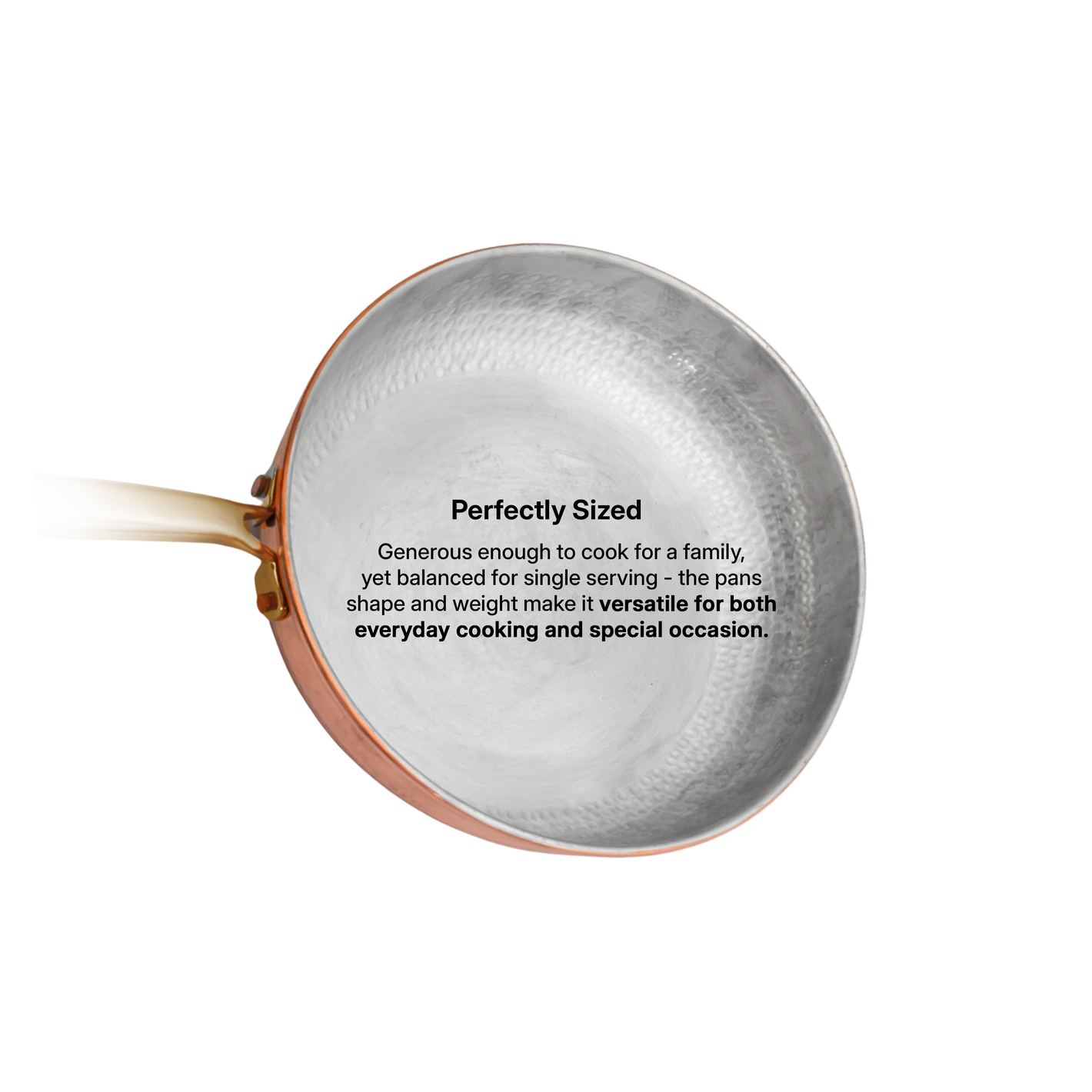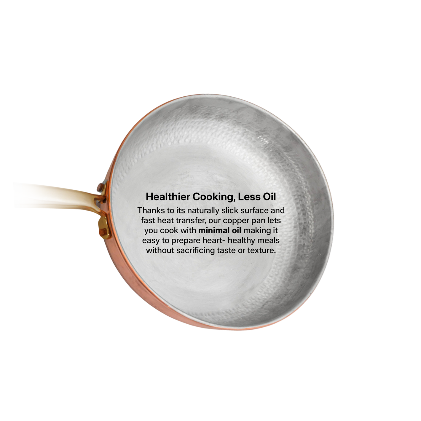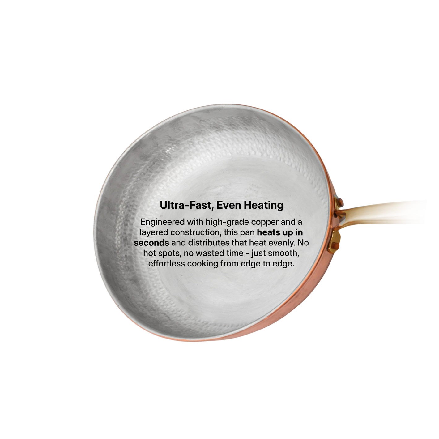 Many cheaper options are copper-plated or mixed with other metals, offering no real benefits and often peeling over time. Our pan is made from solid, handcrafted copper with a performance-focused finish - built to last and deliver true copper performance.